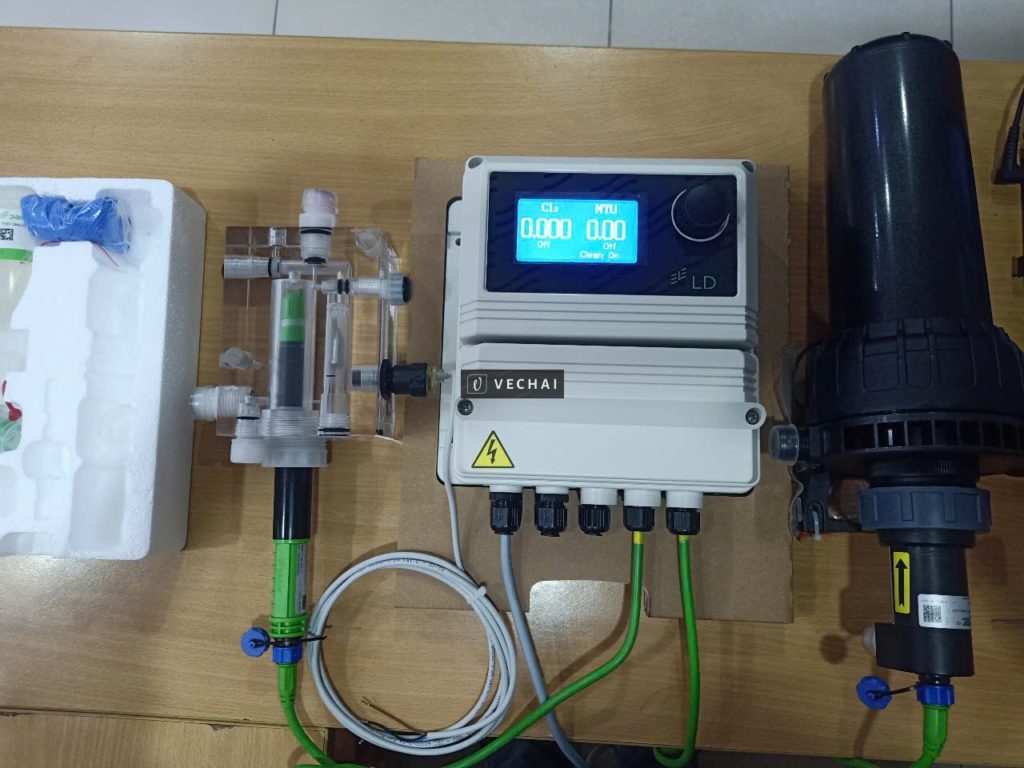 – Chức năng: Cảm biến đọc chính xác giá trị độ đục và Clo dư trong nước, kết quả được hiển thị trên màn hình và truyền dự liệu về hệ thống máy trung tâm qua kết nối như PLC, Modbus, Internet Wifi,…