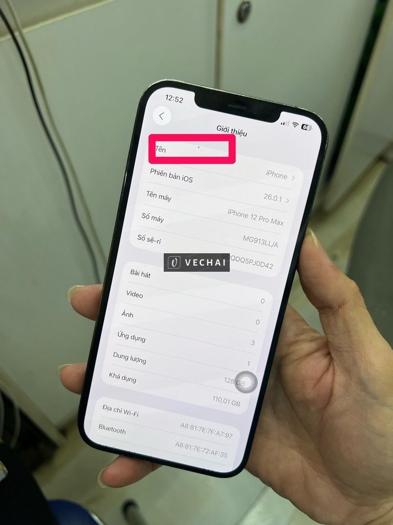 12 Promax 128 full p87 , Ko báo LK, vỏ xấu , main sửa nhẹ ( ko nhận Cam sau ) , Màn zin cấn ốc bị mực kim như ảnh , NFC có lúc dc lúc ko chưa biết do đâu , Cam 0,5 & 1x phấn nhẹ